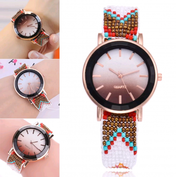 Magnifique montre tissé avec des perles de rocailles de couleur blanche et marron doré;son style bohème chic très tendance , saura mettre votre poignée en valeur .